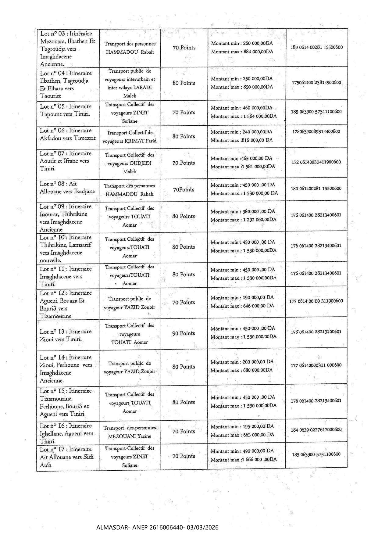 الزبون: COMMUNE D'AKFADOU WILAYA DE BEJAIA رقم ANEP 2616006440 تاريخ النشر: 2026-03-03 عدد الصفحات: 3/4