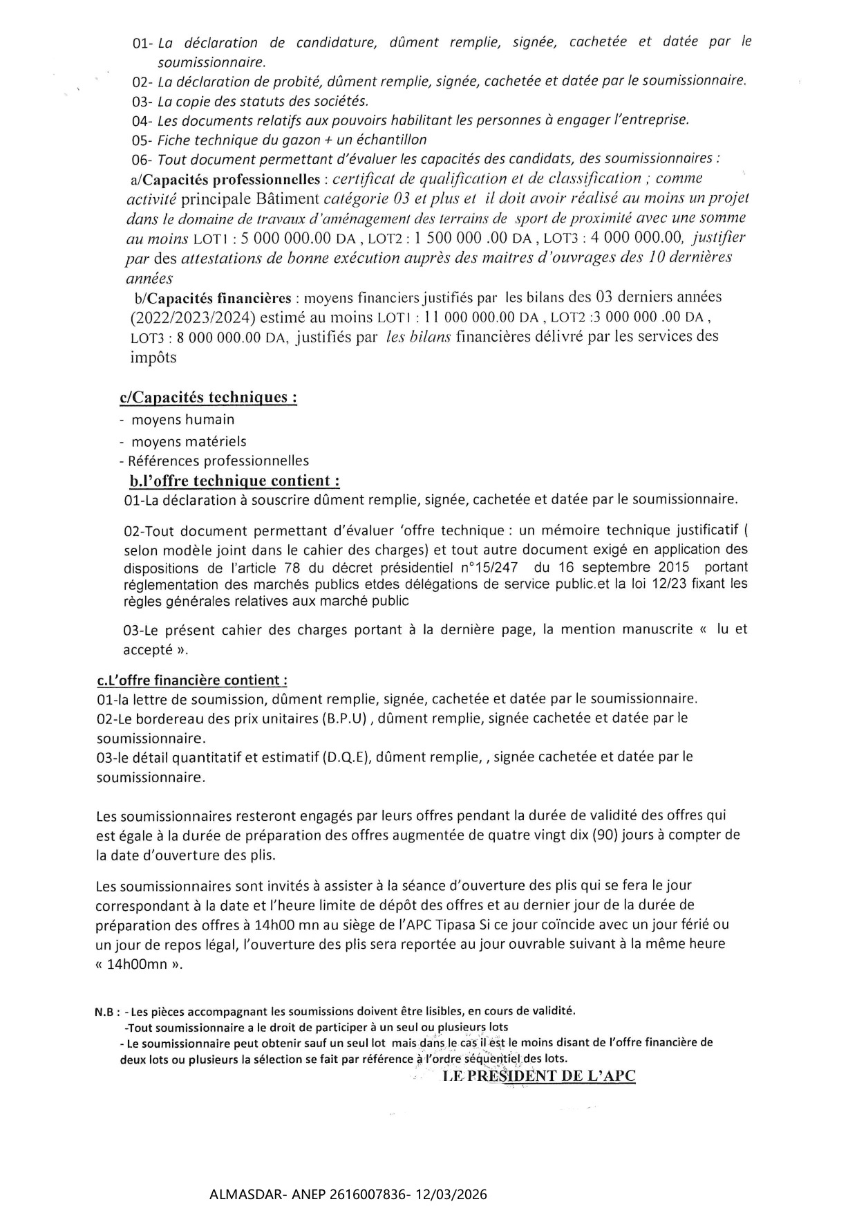 الزبون: commune de tipasa wilaya de tipasa رقم ANEP 2616007836 تاريخ النشر: 2026-03-12 عدد الصفحات: 1/2