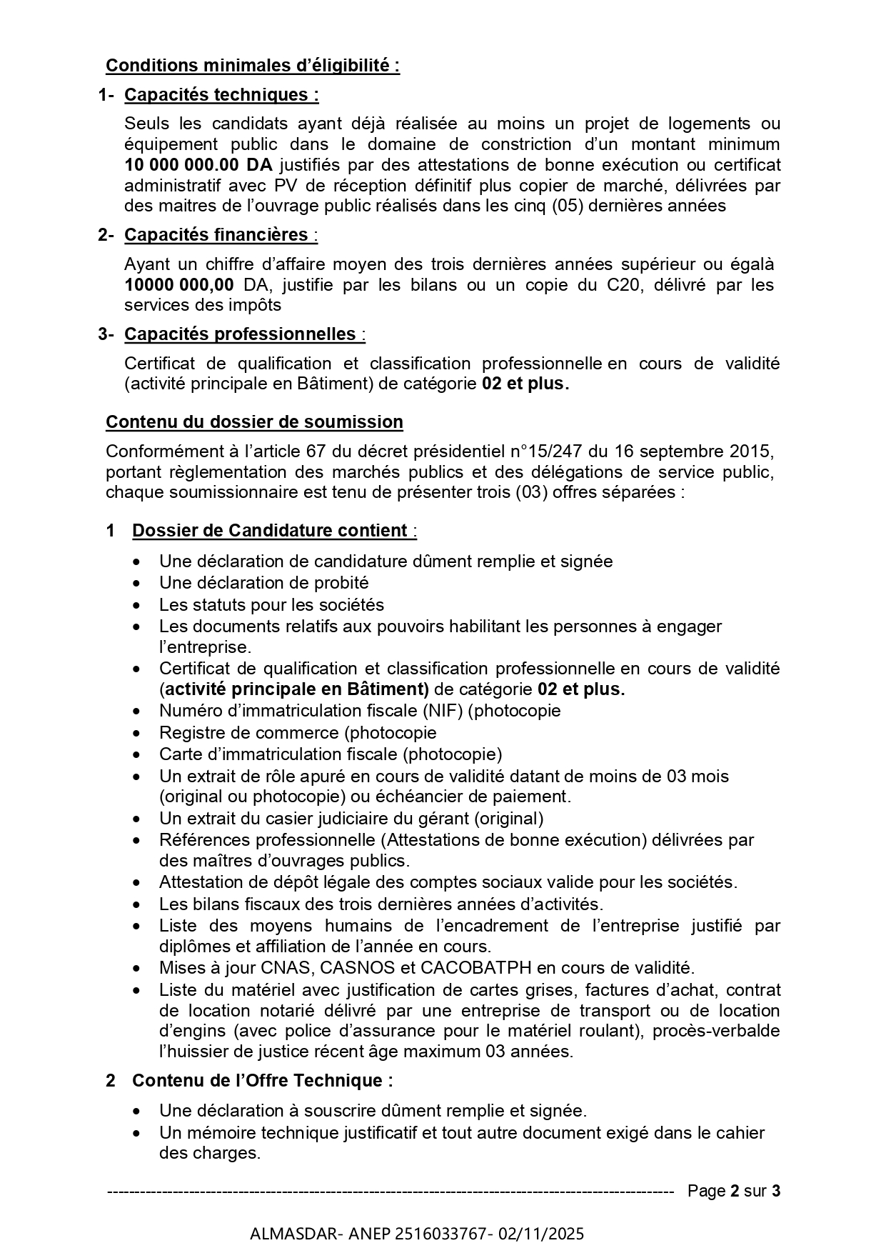 الزبون: office de promotion et de gestion immobiliere de bouira رقم ANEP 2516033767 تاريخ النشر: 2025-11-02 عدد الصفحات: 3/4