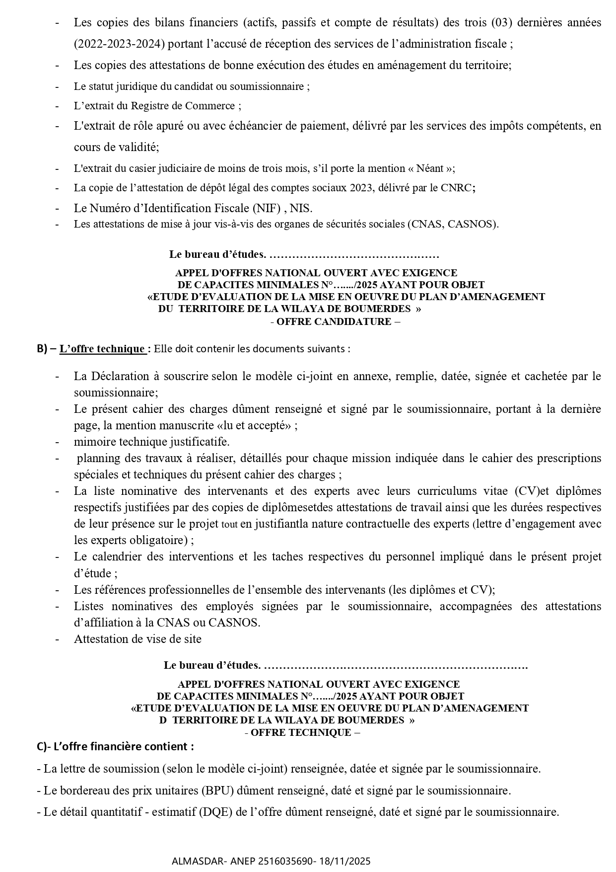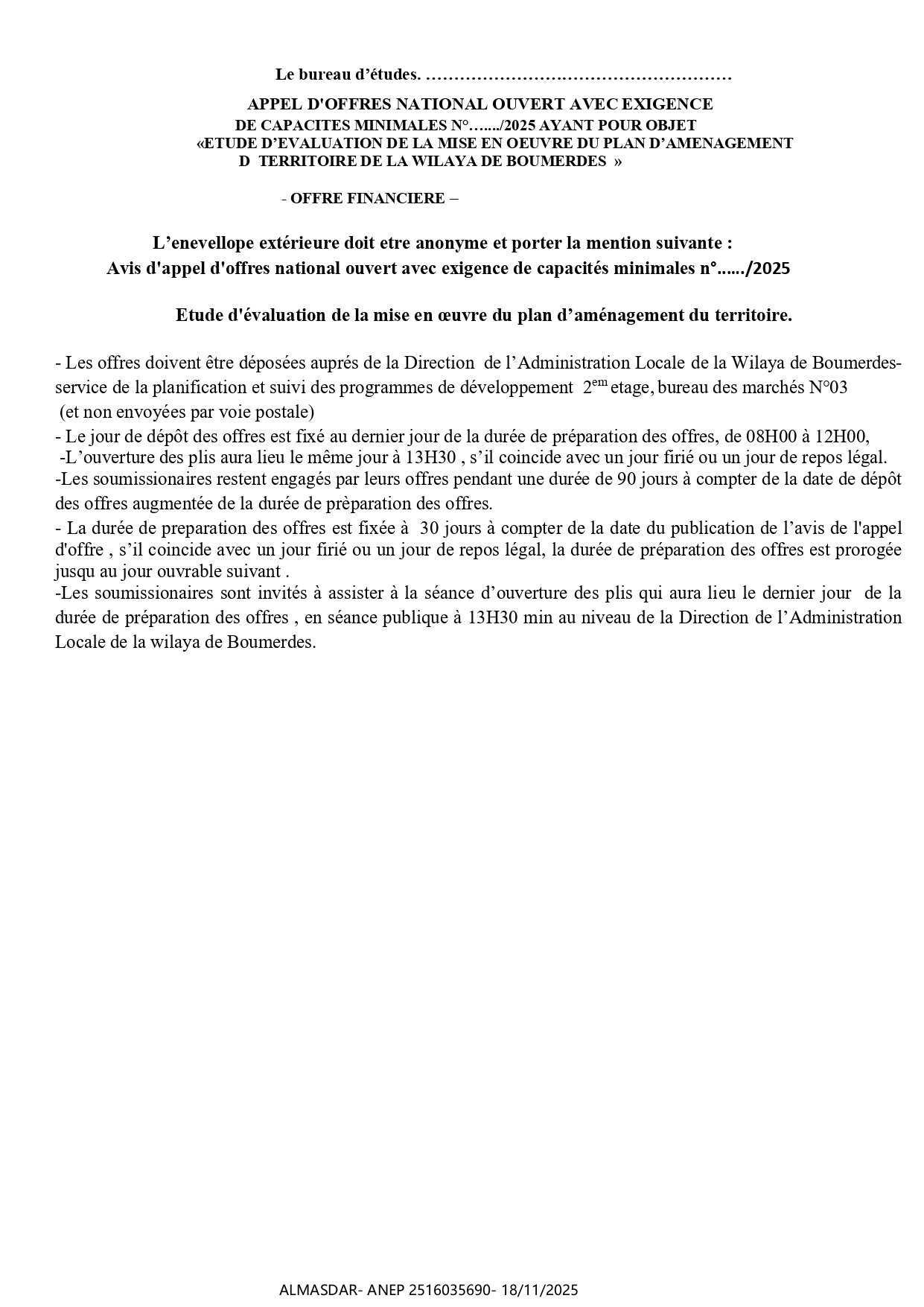 الزبون: WILAYA DE BOUMERDES DIRECTION DE L’ADMINISTRATION LOCALE رقم ANEP 2516035690 تاريخ النشر: 2025-11-18 عدد الصفحات: 3/4